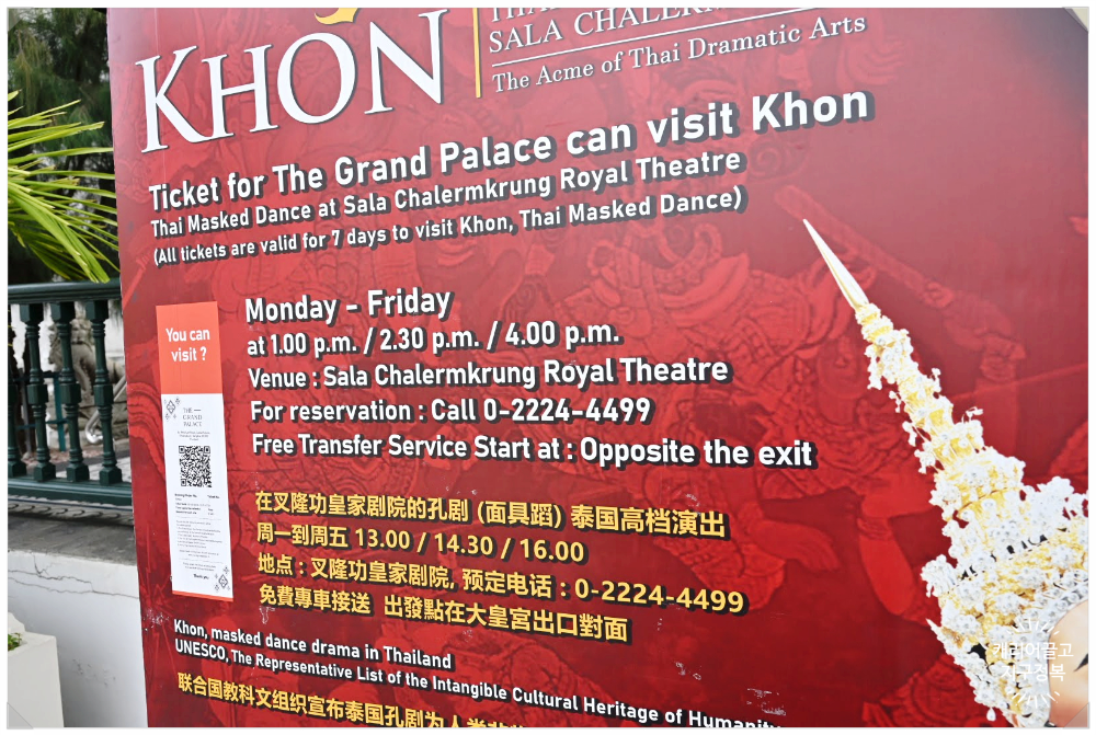 이 티켓에는 무려 태국 왕립 극장에서 열리는 전통 가면극 '콘(Khon)' 공연 관람료가 포함되어 있거든요!