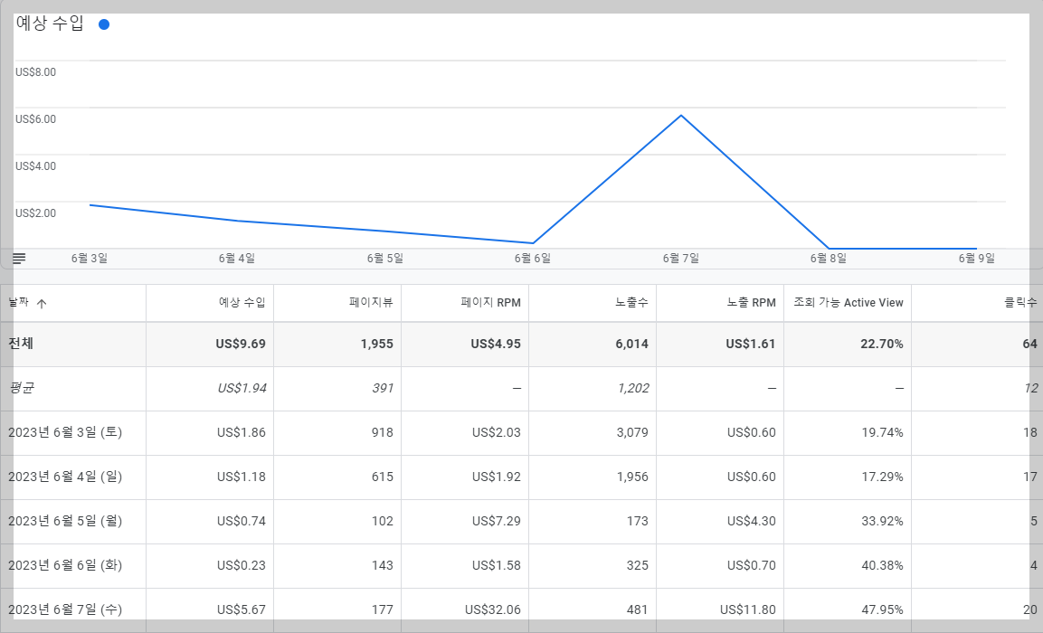 며칠 전부터 갑자기 광고수익이 0$로 측정되고 있습니다.