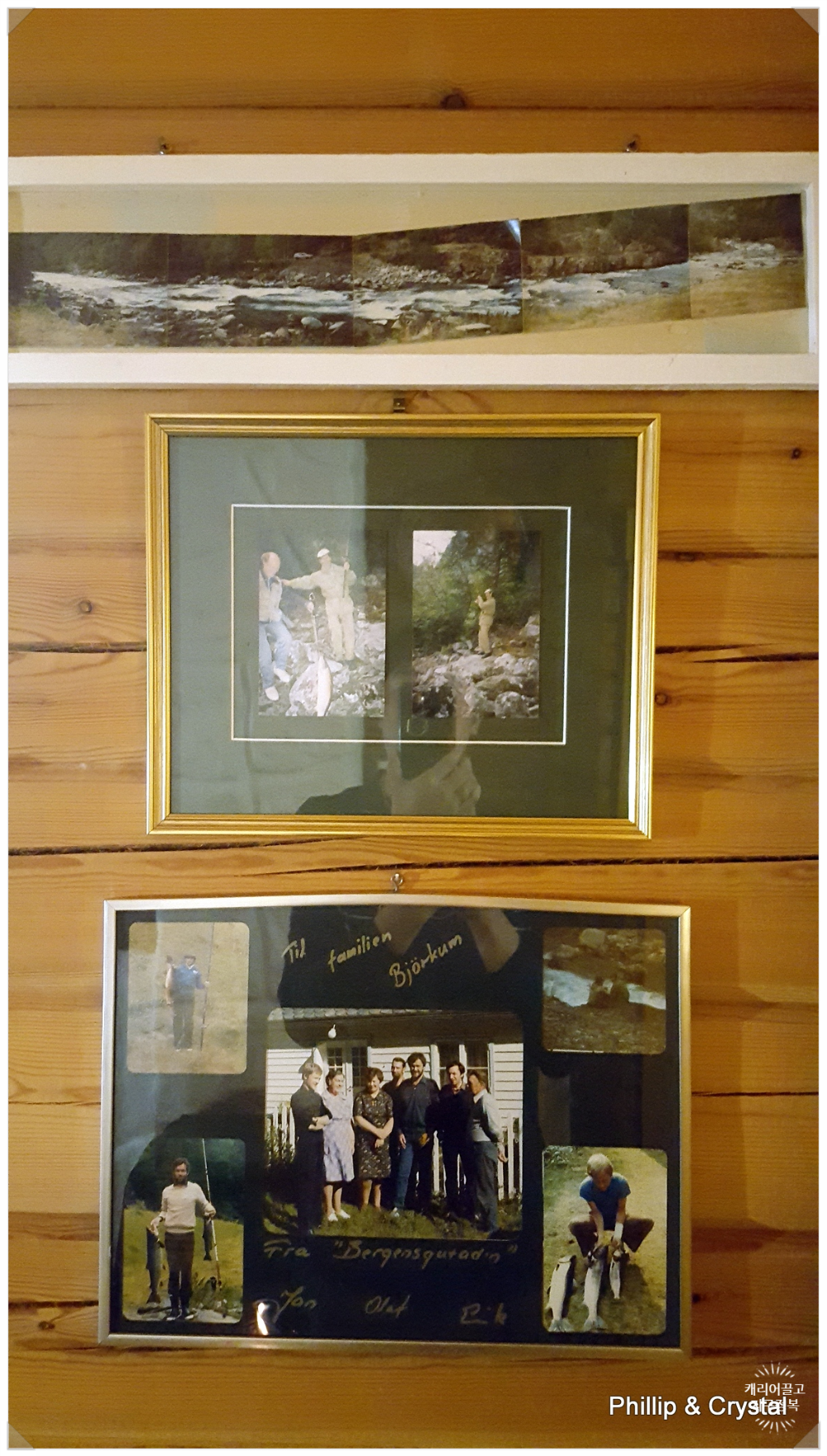 캐빈 안에 연어를 잡은 사진이 있길래,