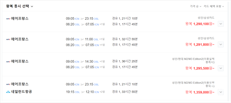 비행시간이 길어진 만큼 유류비가 증가해 전반적인 북유럽 항공료가 다소 상승한 편이니, 스카이스캐너나 구글 플라이트 같은 가격 비교 사이트를 통해 미리미리 알림 설정을 해두고 특가를 노리시는 것을 강력히 추천합니다.