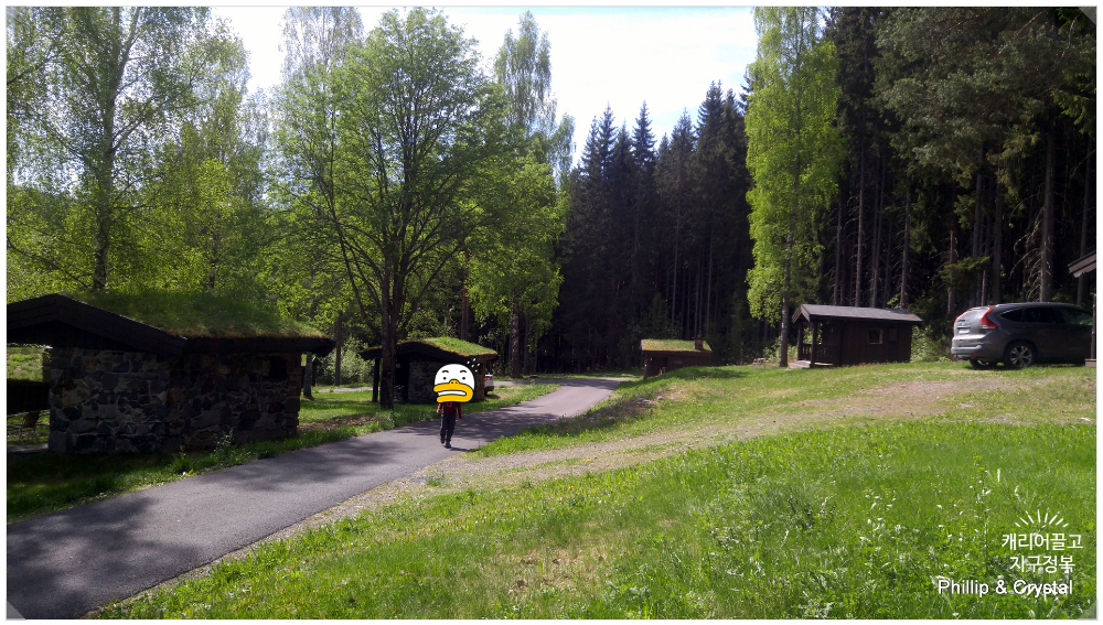 사진을 보시면 노르웨이 전통 오두막들은 지붕 위에 흙을 덮고 잔디를 길러놓은 것을 볼 수 있습니다.