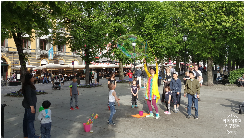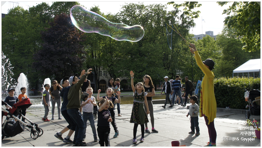 거리 곳곳에서 버스킹이나 아이들을 위한 비누방울 공연도 열려 활기찬 분위기를 자아냅니다.