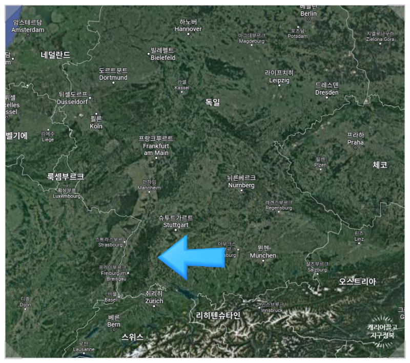 독일 남서부에 거대하게 자리 잡은 슈바르츠발트(검은 숲)의 위치