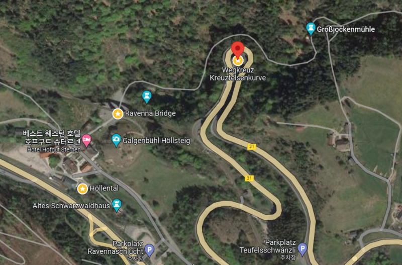 마지막으로 운전 팁 하나! 이곳 호프굿 스터넨 마을을 통과하는 31번 국도(Höllental, 지옥의 계곡 구간)는 경사가 가파르고 헤어핀 커브가 매우 심한 꼬불꼬불한 산길입니다.