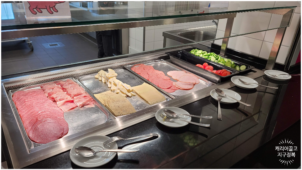 음식은 뭐, 빵, 햄, 치즈, 우유, 요거트가 나오는 평범한 식단이지만요.