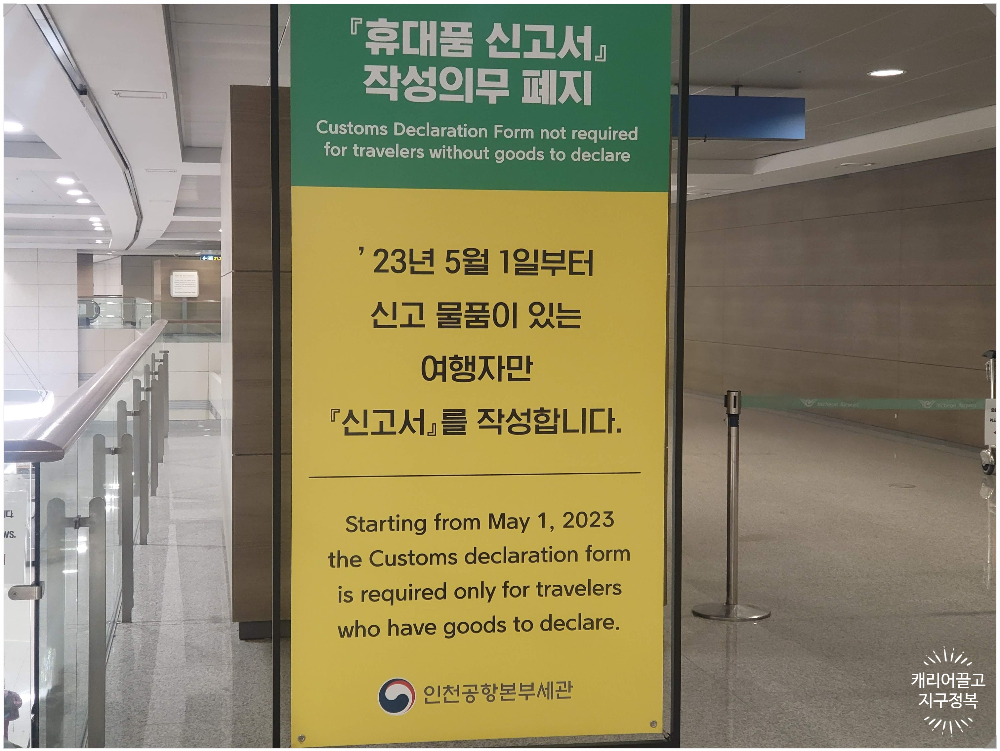 아무튼, 23년 5월부터 한국으로 들어오는 분은 신고서를 작성하지 않습니다.