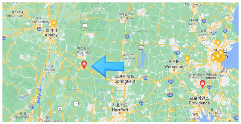 1. 뉴욕주에서 매사추세츠주(보스턴 방향)로 넘어가는 길목, 장거리 운전 중 들르기 딱 좋은 위치의 프리미엄 아울렛입니다.