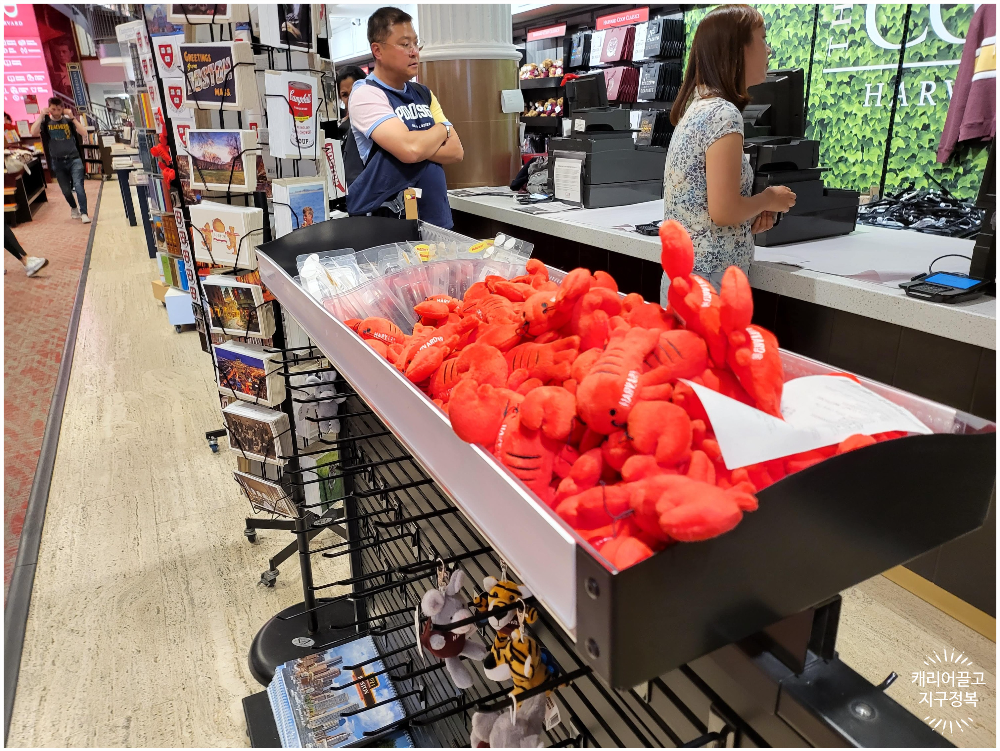 특히 하버드의 마스코트인 '붉은 바닷가재(Lobster)' 인형은 아이들에게 인기가 아주 좋습니다. (MIT는 비버, 예일대는 불독인 것에 비하면 가재는 조금 특이하긴 하죠? ㅎㅎ)