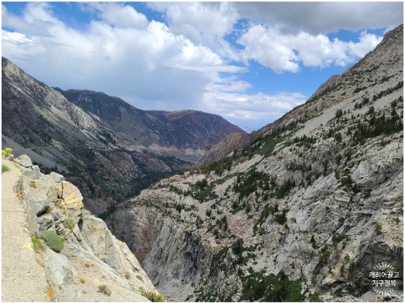 엄청난 고도차를 보여주는 거대한 골짜기, '티오가 로드 뷰 포인트(Tioga Road Viewpoint)'입니다.