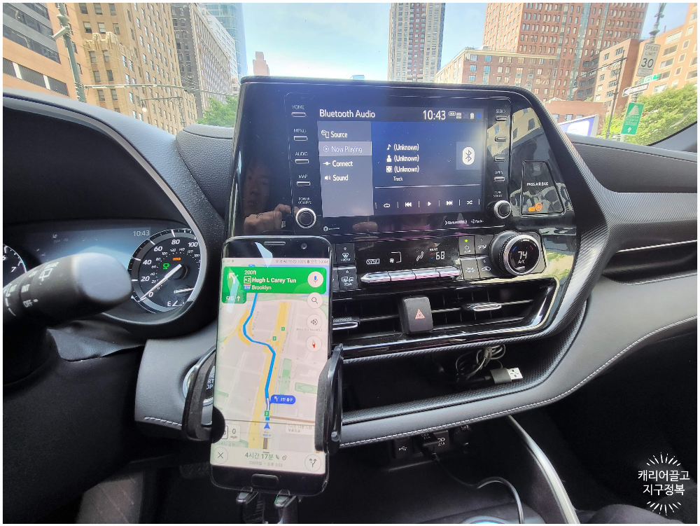 그래서, 저는 여분 스마트폰과 무선 충전 거치대를 내비게이션용으로 가지고 다닙니다.