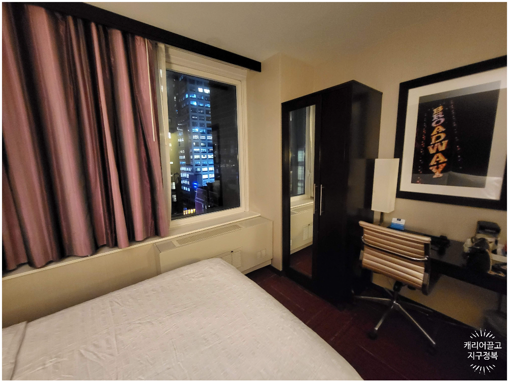 타임스퀘어 광장 주변에 있는 호텔이니, 뉴욕 미드타운을 다니는 데 있어 위치는 베리굿입니다.