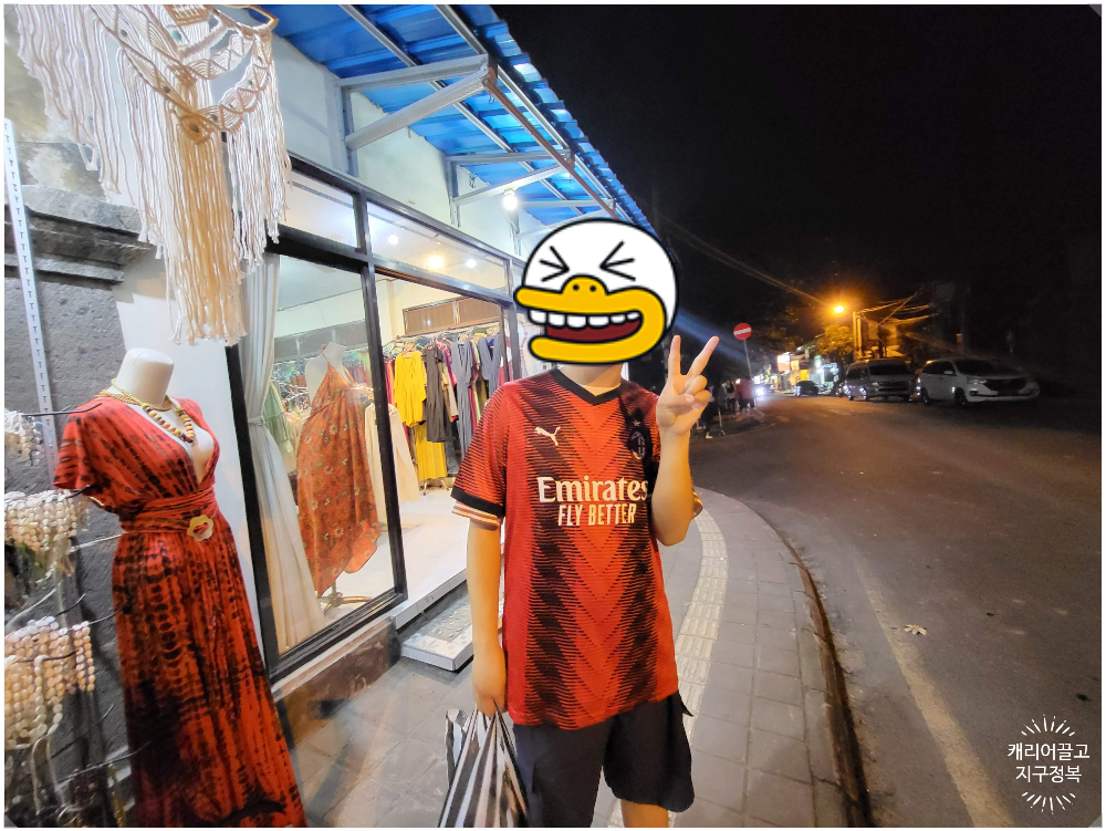 저희 아이들은 관광 기념품엔 1도 관심이 없다가, 골목 안쪽에 있는 '축구 유니폼(짭조끼)' 가게를 발견하곤 눈이 뒤집혔습니다. 유명 클럽팀 유니폼 상하의 세트를 대략 20,000~25,000 루피아(약 1,700~2,200원)라는 말도 안 되는 헐값에 득템하며 아주 만족스러운 쇼핑을 마쳤습니다. (물 빠짐 주의! ^^)