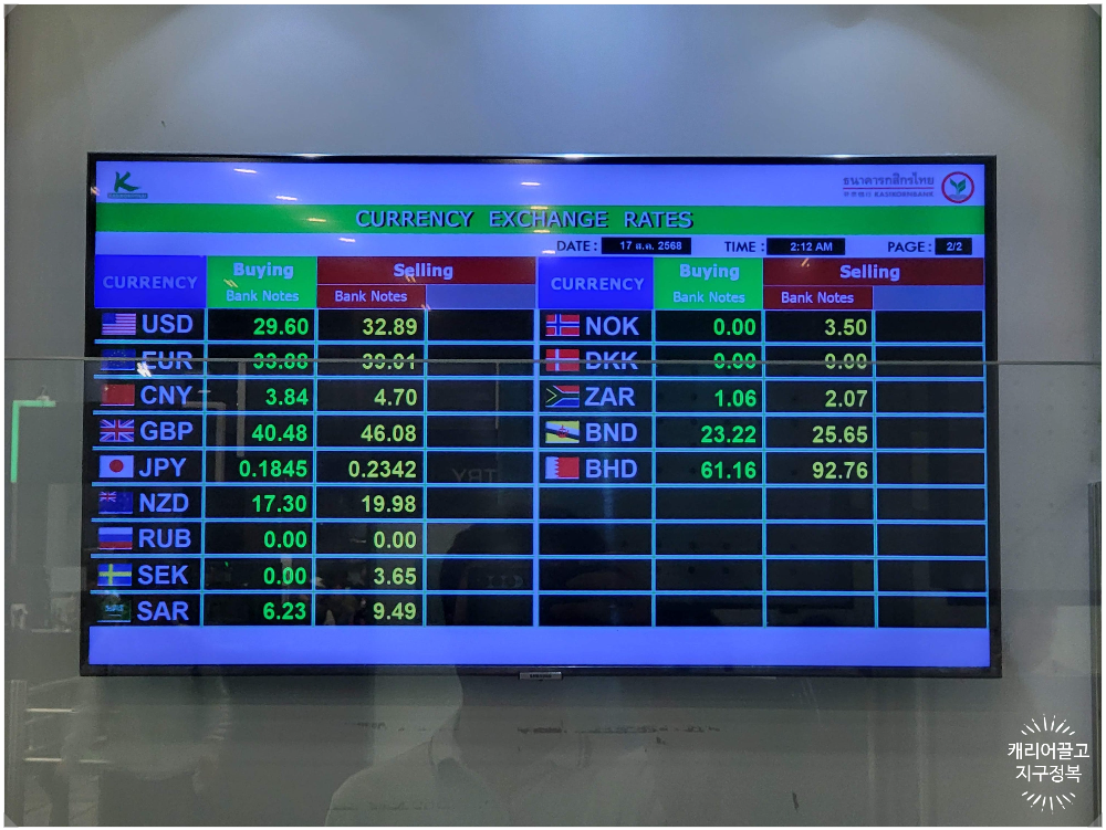 공항 내 환전소에서는 한국 돈(KRW)을 잘 안 받아주거나 환율이 매우 나쁩니다.