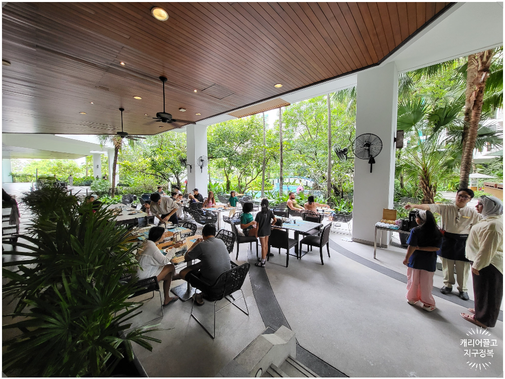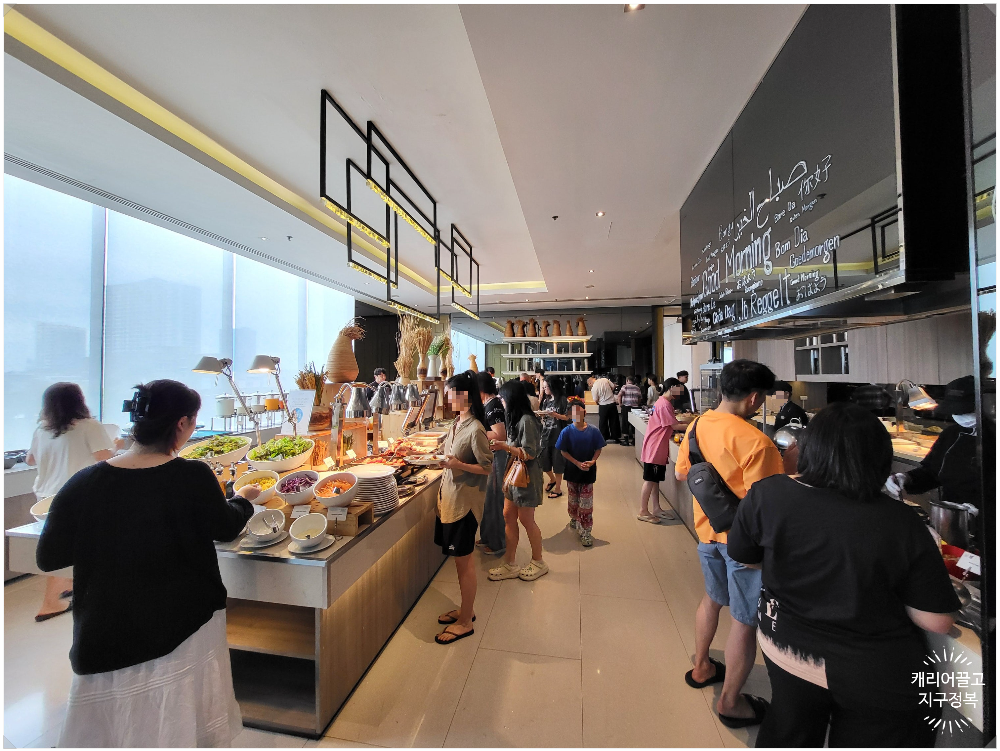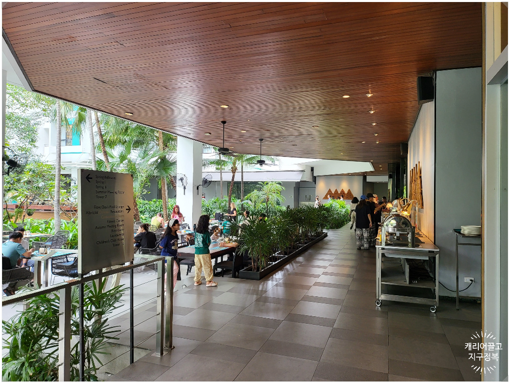 늦잠 자고 일어나 조식당으로 내려가 보니 사람들이 제법 많았습니다.