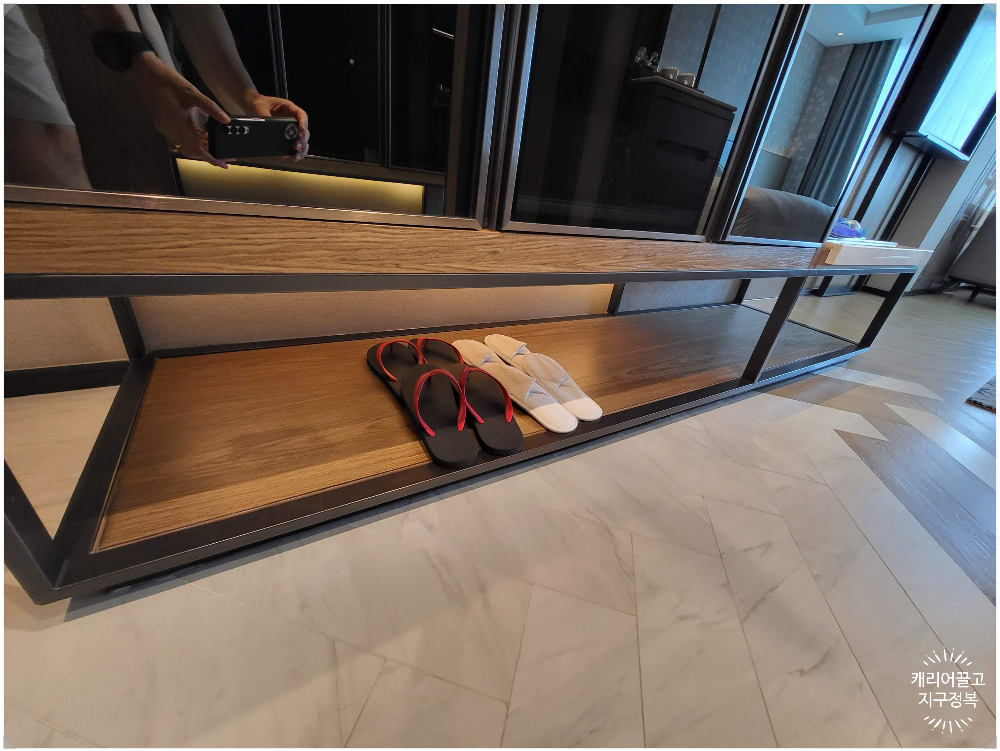 객실 내에는 실내화는 물론 외출 시 가볍게 신기 좋은 조리형 실외화도 비치되어 있습니다.