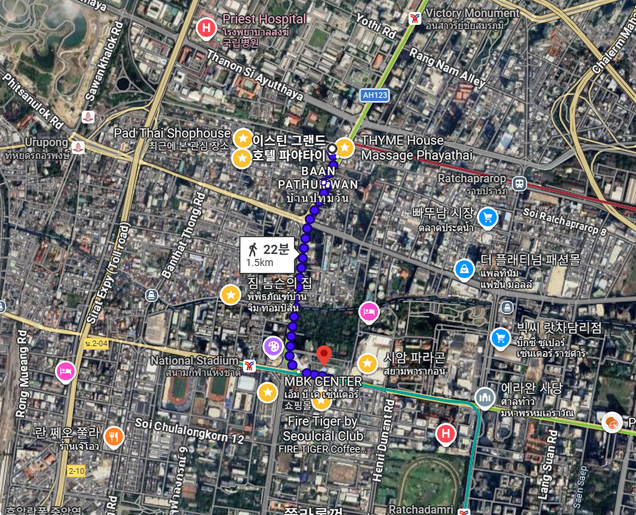 핵심 쇼핑몰들이 모여있는 시암까지 걸어서 22분 걸린다.