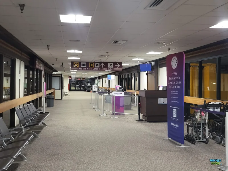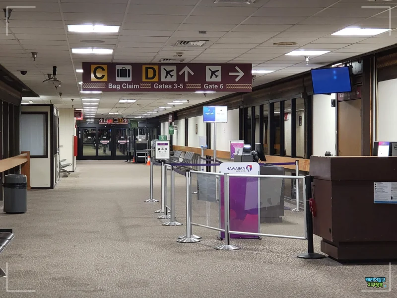 힐로 공항의 렌터카 반납은 단층 주차장 구조로 매우 직관적이고 편리합니다. 공항 규모가 작고 보안 검색이 빠르기 때문에 1시간 반 전 도착은 다소 이를 수 있으며, 탑승 40~50분 전 도착을 권장합니다. 편의시설이 부족하므로 대기 시간 관리에 유의하시기 바랍니다.