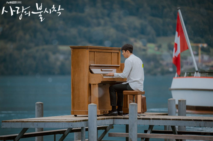 호수 위에 놓인 데크에서 리정혁(현빈)이 피아노를 치던 그 명장면! (출처: tvN 사랑의 불시착)