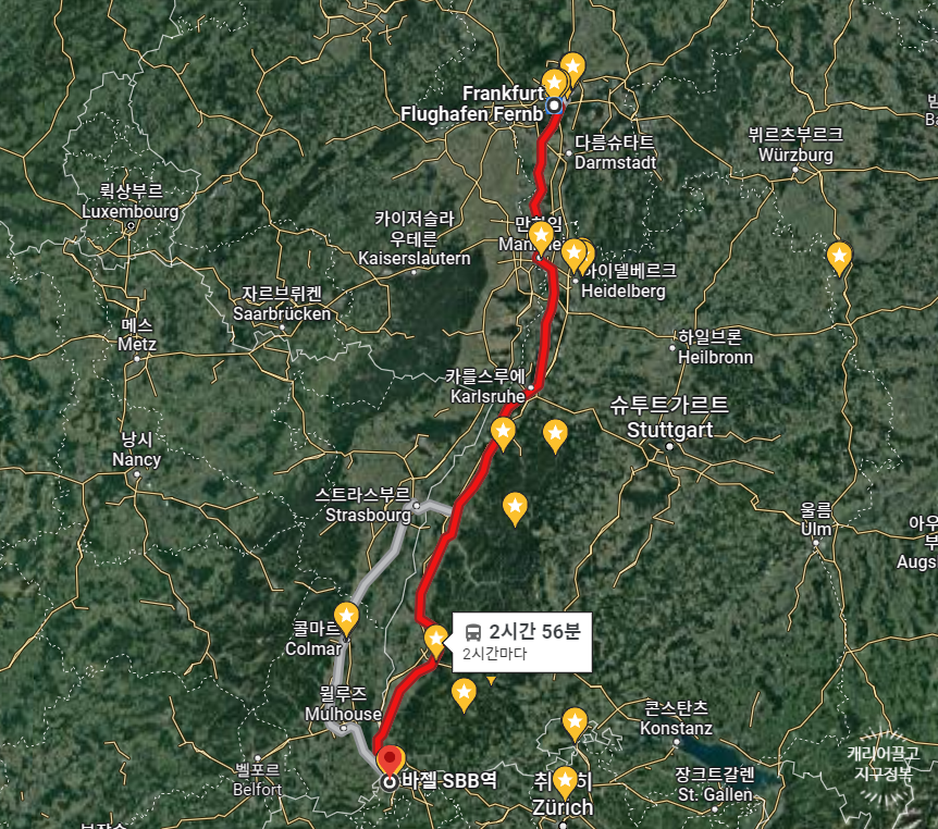 스위스 바젤까지 직행으로 가는 것이 맞네요.