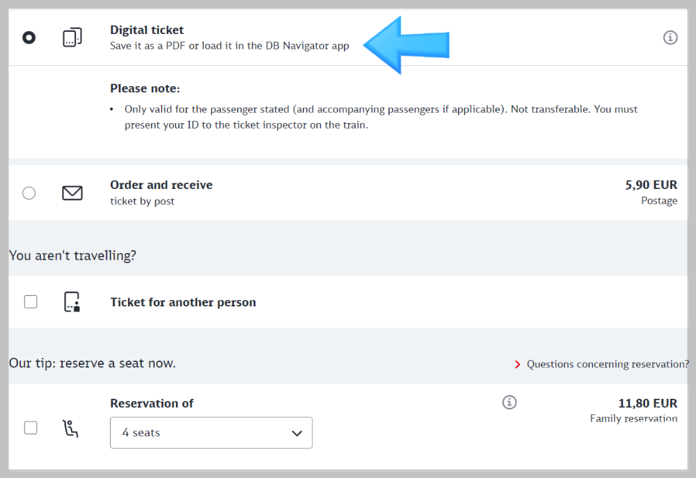 추가 비용이 없으므로 디지털 티켓을 선택합니다.