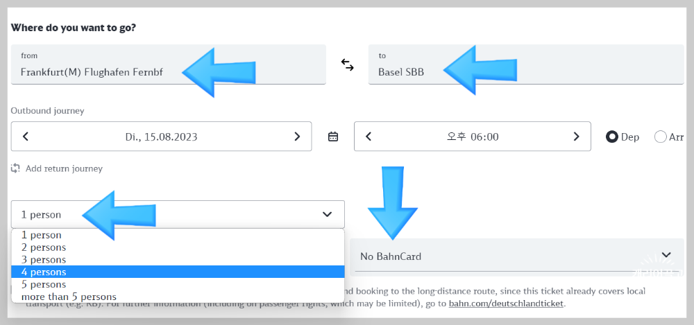 여행자는 없을 것이므로, 없다 = "No BahnCard"를 선택합니다.