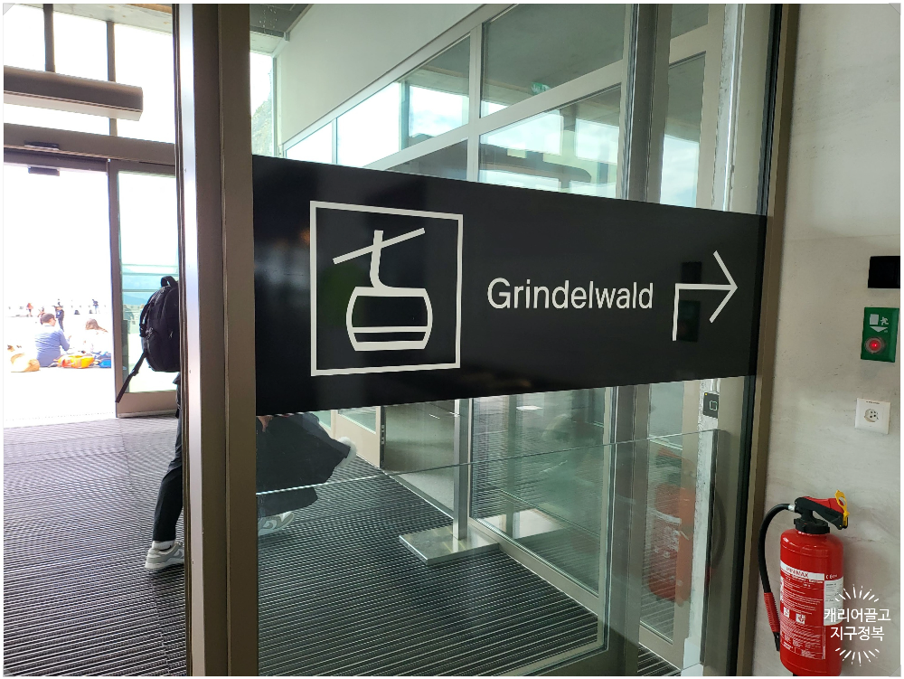 아이거글레처 역에서 하차한 뒤 넋을 놓고 그대로 기차 자리에 앉아 계시면 절대 안 됩니다! 이곳에서 클라이네 샤이덱 방향으로 기차가 계속 내려가기 때문에 반드시 이곳에서 하차하여 '아이거 익스프레스' 곤돌라 승강장 방향표를 따라 환승하셔야 원래 출발했던 그린델발트 터미널 주차장으로 돌아갈 수 있습니다.