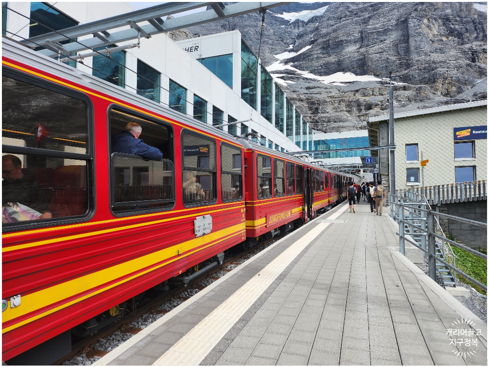 인증샷 대기 꿀팁과 하산 시 아이거글레처(Eigergletscher) 역에서 놓치면 안 될 빙하 뷰, 그리고 출발지인 그린델발트 터미널로 무사히 되돌아가는 방법까지 꼼꼼히 알려드립니다.