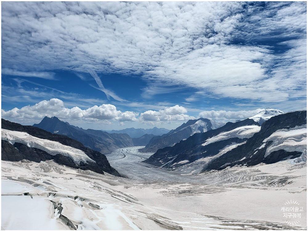 그리고 남쪽으로 고개를 돌리면 융프라우요흐 투어의 진정한 백미인 '알레치 빙하(Aletsch Glacier)'가 나타납니다.