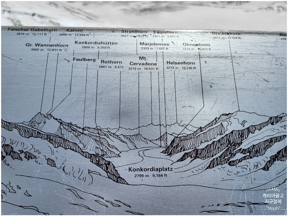 이 알레치 빙하가 한데 모여 흐르는 거대한 눈의 평원을 '콘코르디아플라츠(Konkordiaplatz, 화합의 광장)'라고 부릅니다.
