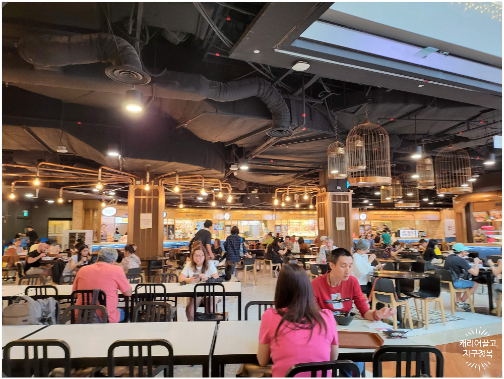이 거대한 상가 건물 한쪽 끝(가장 북쪽)으로 이동하면 대형 푸드코트 구역이 나옵니다.