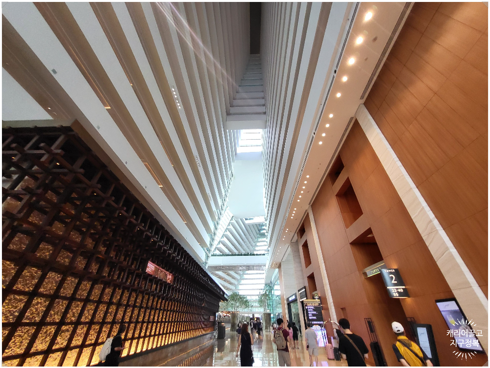 MBS 호텔 코앞에 딱 도착하면, 생각보다 호텔 전체 전경은 한눈에 들어오지 않습니다. 워낙 높고 거대하니까요. 멋진 호텔 전경 인증샷은 나중에 강 건너편에서 찍기로 하고, 비도 피할 겸 일단 화려한 호텔 내부부터 둘러보러 들어갑니다.