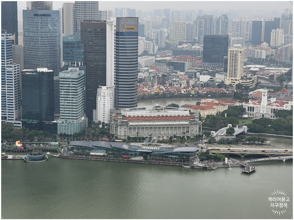 그리고 도심 쪽으로 고풍스러운 건물이 하나 보이는데요, 바로 '풀러턴 호텔(The Fullerton Hotel)'입니다. 과거 싱가포르 중앙 우체국이었던 건물을 개조해 만든 역사적인 5성급 호텔입니다.
