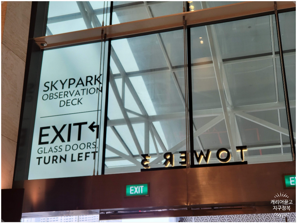 여느 유명 랜드마크 빌딩들이 그렇듯, MBS 전망대 역시 투숙객들의 동선과 분리하기 위해 건물 밖 타워 3(Tower 3) 외곽의 전용 출입구(지하)를 이용해야 합니다.