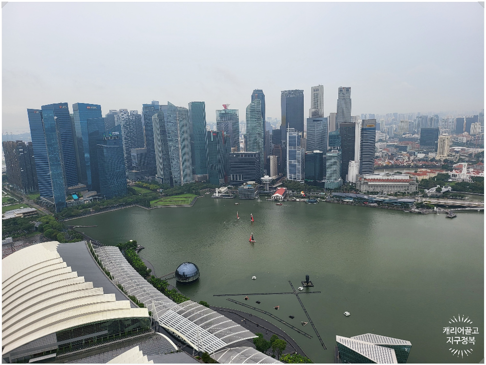 이렇게 샌즈 스카이파크 전망대에 올라오면 마리나만과 싱가포르 도심의 랜드마크들을 하늘 위에서 한눈에 조망할 수 있어 참 좋습니다. 특히, 6만 원 상당의 티켓을 샌즈 라이프스타일 혜택으로 '공짜'로 얻었다면 만족도는 200% 상승하죠.