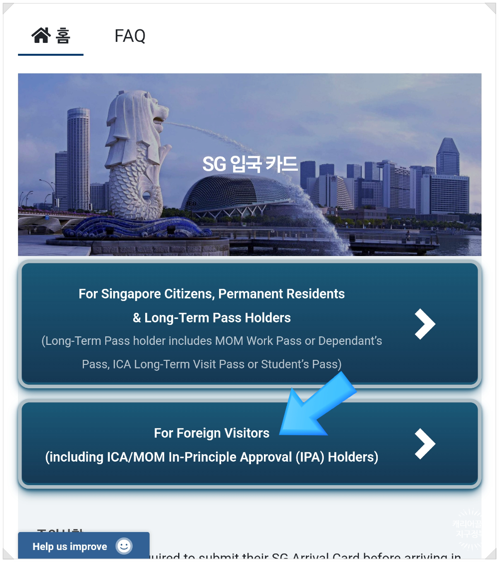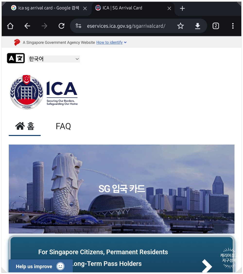 👉 싱가포르 공식 SG 어라이벌 카드 작성 웹사이트 바로가기