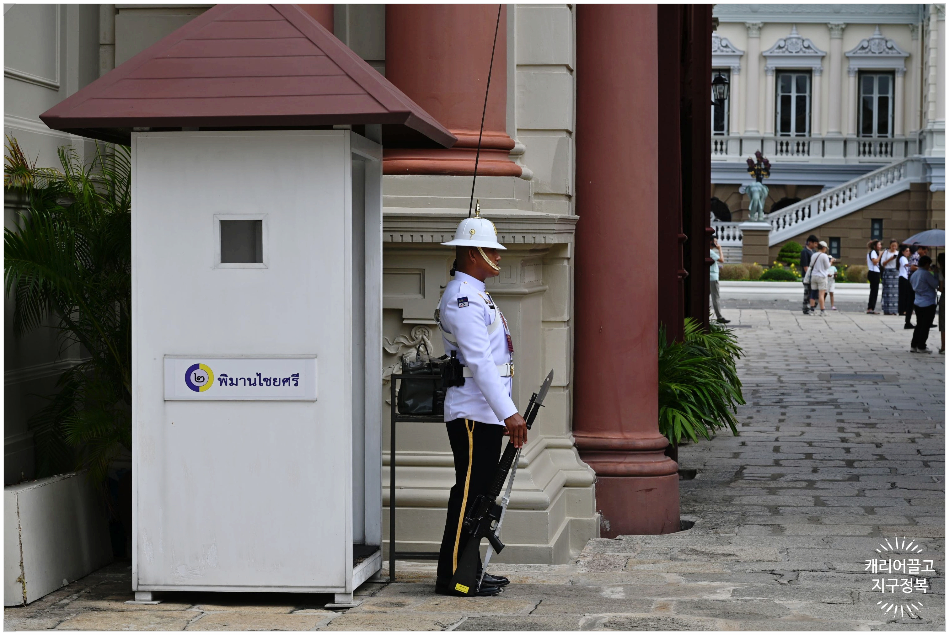 짜끄리 마하 쁘라삿 주변을 비롯해 화장실 가는 길목 등 왕궁 곳곳에는 멋진 하얀 제복을 입고 총을 든 '왕립 근위병'들이 보초를 서고 있습니다.