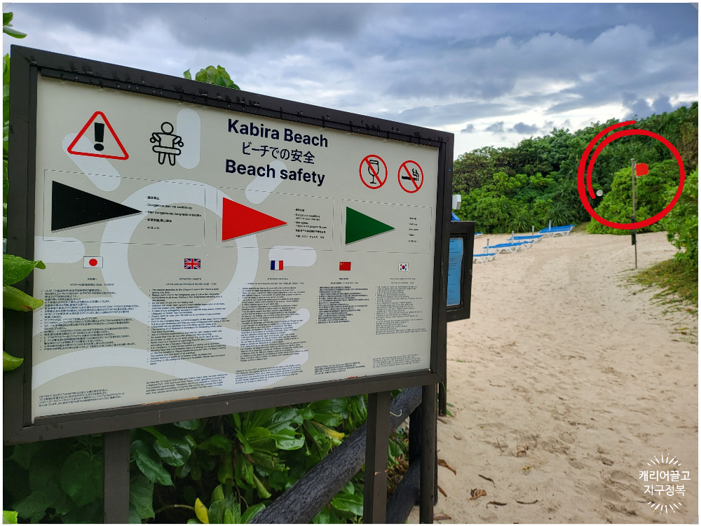 이 표시는 "수영은 가능하나, 안전 요원이 없으니 책임은 본인이 져야 함"을 의미합니다.