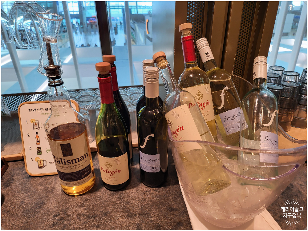 저는 비행기 타기 전 양주를 잘 안 마시지만, 트렌드를 반영해 '탈리스만(Talisman) 위스키'가 준비되어 있더라고요. 요즘 하이볼이 대세이다 보니 얼음과 진저에일 등을 섞어 직접 탈리스만 하이볼을 만들어 먹을 수 있는 친절한 레시피 안내문도 놓여 있습니다. 애주가분들은 여기서 가볍게 한잔 하시고 장거리 비행기에서 푹 주무시는 것도 좋은 전략이겠습니다.