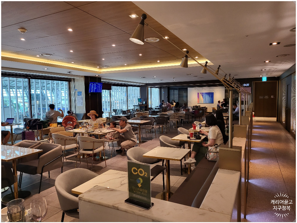 라운지의 내부는 서편과 거의 유사한 인테리어입니다. 하지만 인구 밀도 자체가 다르기 때문에 시장통 같은 분위기 없이 쾌적하게 비행 전 휴식을 취할 수 있습니다.