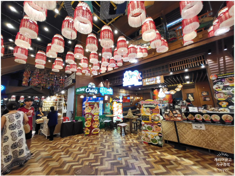 방콕의 전통적인 야시장과 수상시장을 실내로 그대로 옮겨놓은 콘셉트의 어마어마한 푸드코트입니다. 덥고 찝찝한 야외 시장 대신, 에어컨이 빵빵하게 나오는 쾌적하고 위생적인 환경에서 길거리 음식을 즐길 수 있어 가족 여행객에겐 더할 나위 없이 좋습니다.