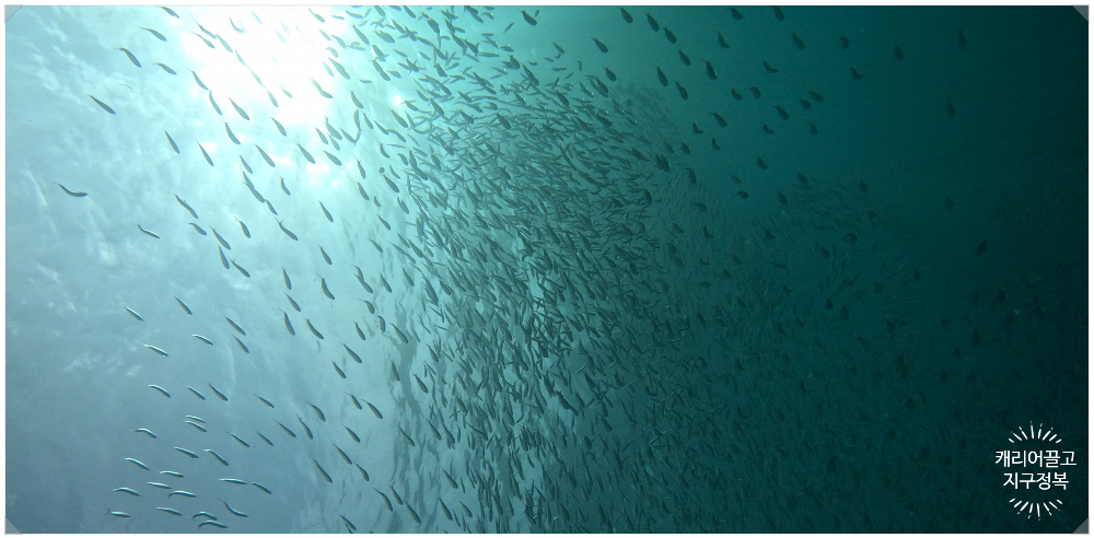 국내 대형 아쿠아리움의 거대한 원통 수조에서나 보던, 수만 마리의 정어리들이 은빛 비늘을 반짝이며 한 덩어리로 춤을 추는 환상적인 모습을 대자연 속에서 직접 볼 수 있는 곳이 바로 이곳 세부 모알보알입니다.