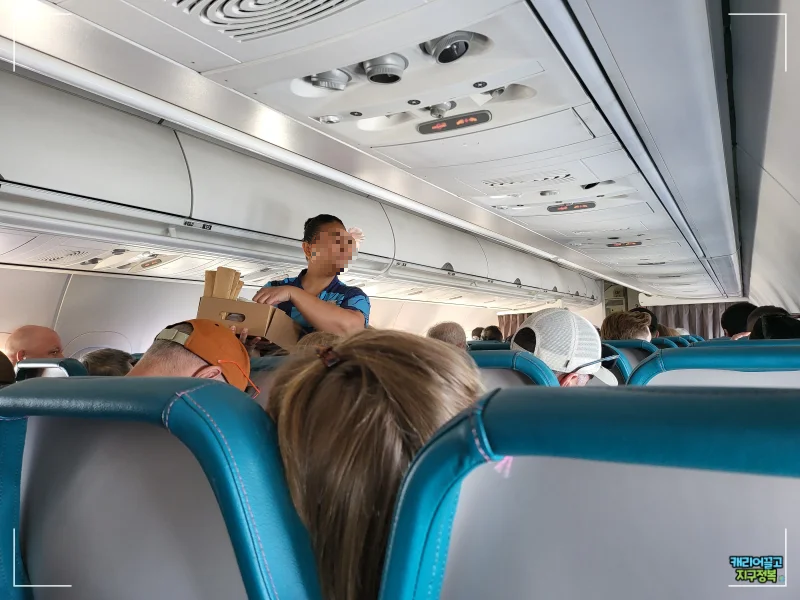 그런데도 비행기가 안정 고도에 접어들자마자 승무원분들이 분주하게 움직이시며 무언가를 나눠주시더라고요.