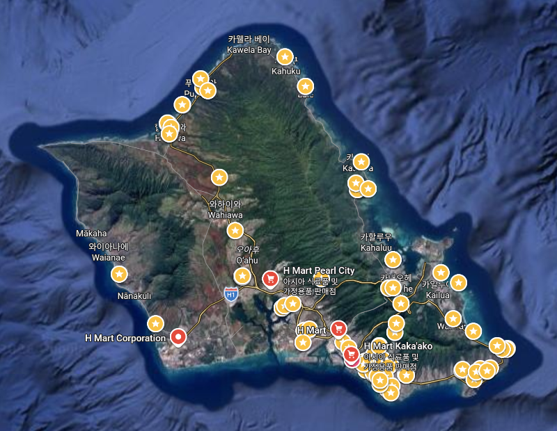 하와이 오아후섬에는 현재 H마트가 총 4군데 정도 운영 중인 것으로 나옵니다.