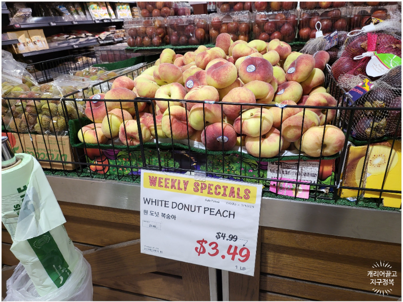 유럽 여행 가면 꼭 먹어야 한다는 그 유명한 납작 복숭아(도넛 복숭아)가 하와이 H마트에도 들어와 있더라고요! 당도가 아주 높으니 발견하시면 꼭 카트에 담아보세요.