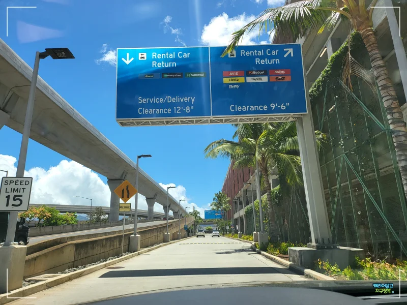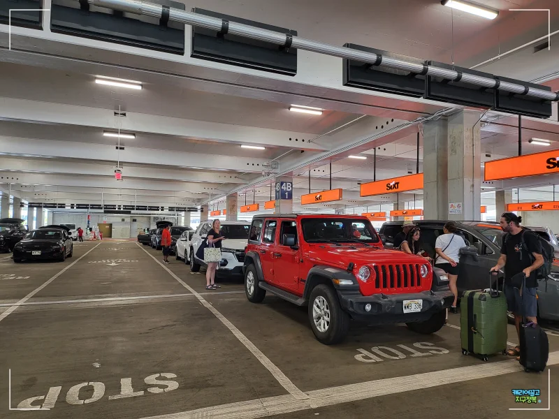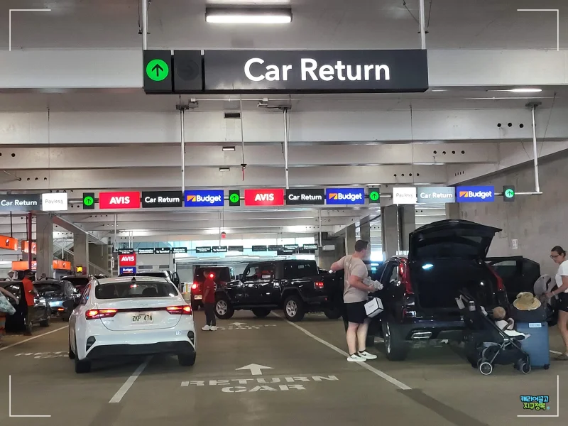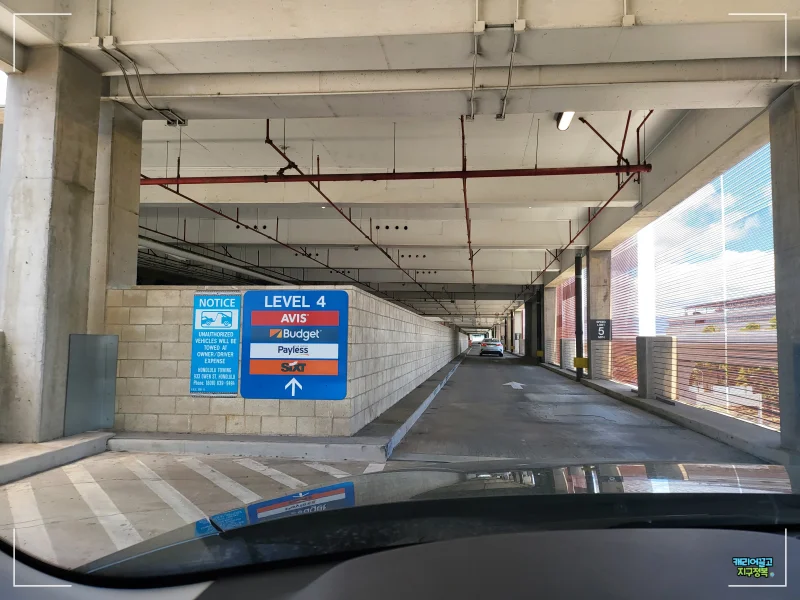 호놀룰루 공항의 통합 렌터카 센터(CONRAC)는 대부분의 메이저 렌터카 업체들이 한곳에 모여있어 동선이 무척 직관적입니다. 바닥에 그려진 유도선과 해당 업체의 간판만 보고 진입하면 초행길이라도 전혀 어렵지 않습니다.