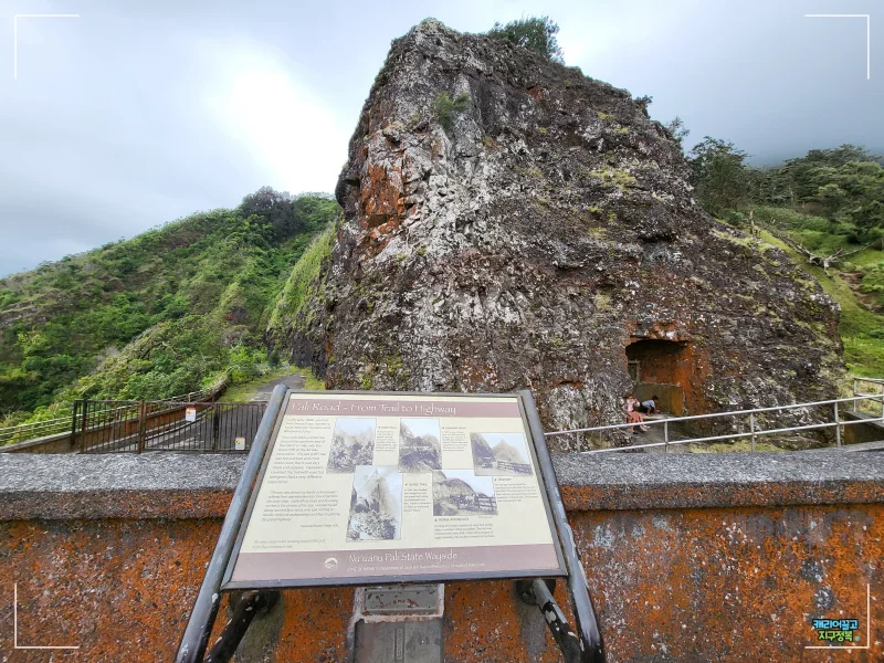 지금의 현대적인 고속도로 터널이 개통되기 전에는 수많은 사람들이 절벽을 따라 난 이 아찔한 옛길(Old Pali Road)을 이용해 섬의 남과 북을 오갔다고 합니다.