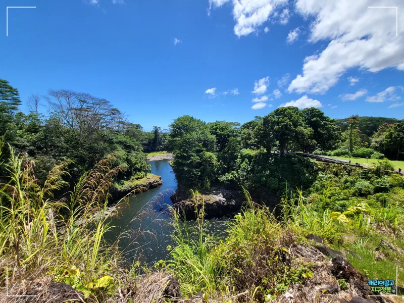 렌트카 여행 중 잠시 쉬며 도시락을 먹거나 인생 사진을 남기기에 완벽한 힐로의 필수 코스입니다.