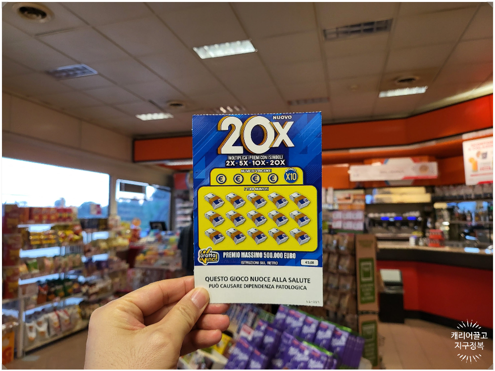 더보기이탈리아 휴게소에서 점원이 골라준 5유로 즉석복권을 긁었지만 아쉽게도 당첨 실패! 오늘도 승률은 zero, 비즈니스 클래스는 다음 기회로 미뤘습니다. 안녕하세요, 캐끌지정입니다. 가족들과 함께하는 렌터카 여행을 하다 보면,길거리 휴게소를 들릴 수밖에 없는데요, 그런 휴게소에서 기름도 넣고, 커피도 마시고, 화장실도 가고 하는데,그 와중에,복권이 보이면 그걸 꼭 해보고 싶어 진답니다. 우리나라에서는 절대 사지 않는 복권을,이상하게 외국에 나가면 꼭 사고 싶어 집니다. 일본에서도 긁어보고, 독일에서도 긁어보고, 미국에서도 긁어보았지만,사실 승률은 zero였는데요, 이곳 이탈리아에서도로마에서 피사로 올라가는 길에 잠시 휴게소에 들렀는데, 복권이 보이더라고요? 승률 Zero에서 벗어나기 위해서라도..
