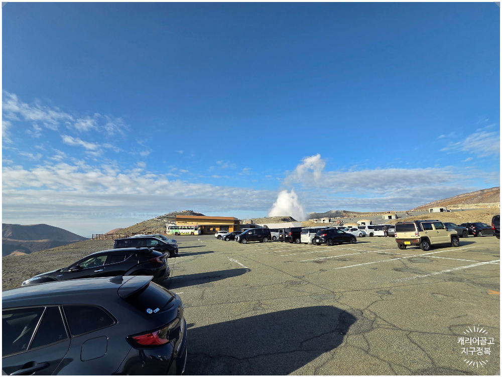 매표소를 통과해 구불구불한 길을 조금 더 오르면 아소산 정상 주차장에 도착합니다.