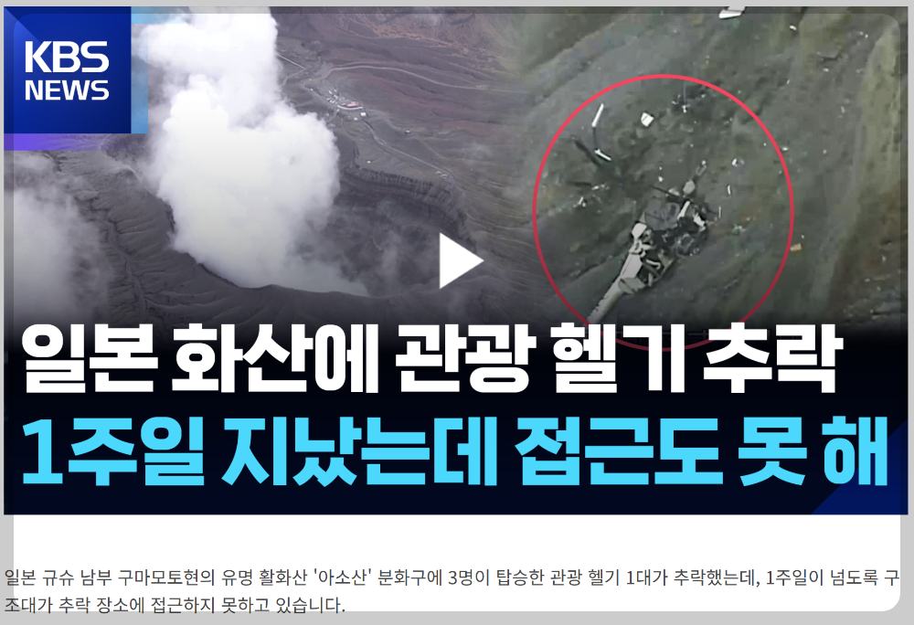 제가 저 헬기를 보고 온 바로 다음 날 아침, 해당 헬기가 추락했다는 뉴스가 보도되었습니다.